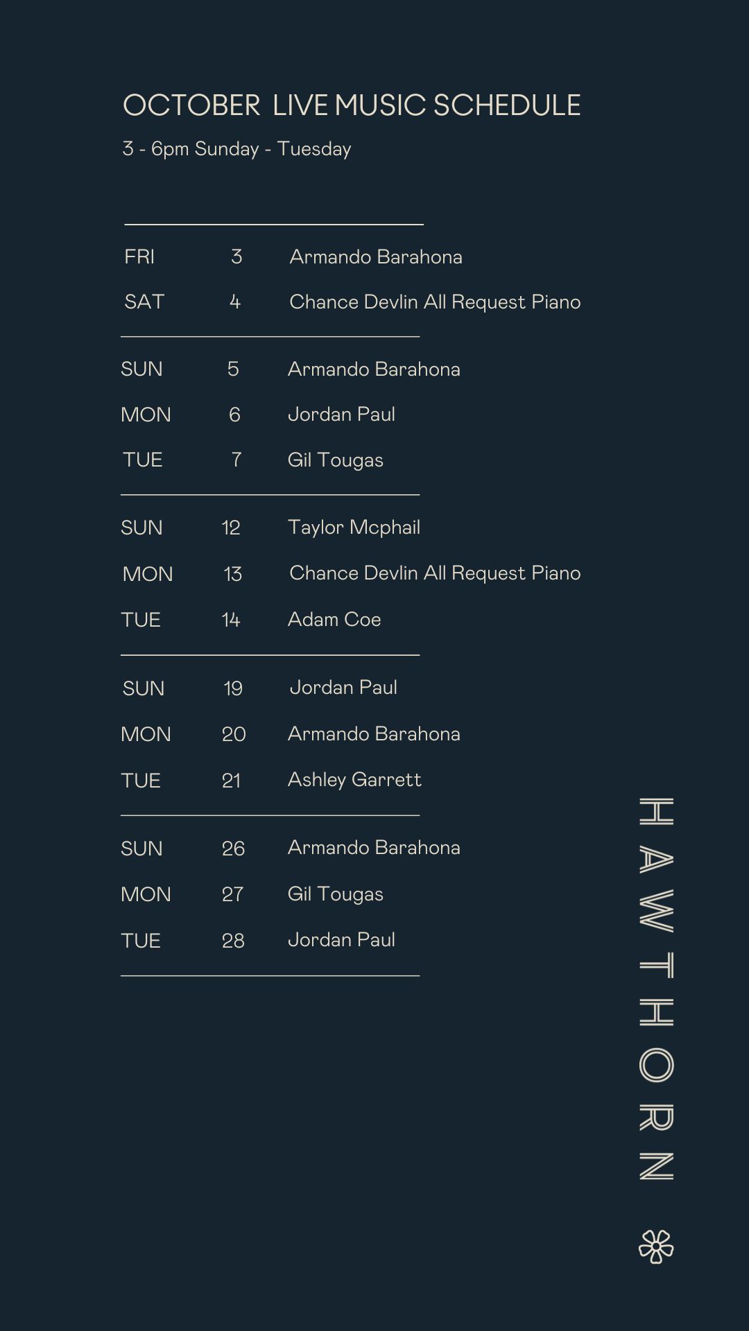 Every Sunday to Tuesday from 3 - 6pm, sip on cocktails and unwind to the soulful sound of live music.